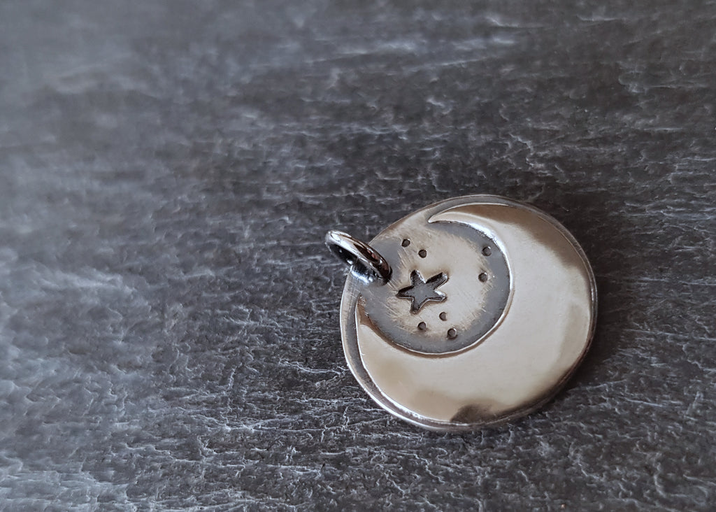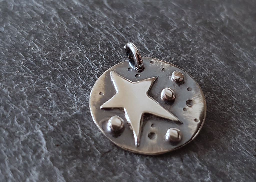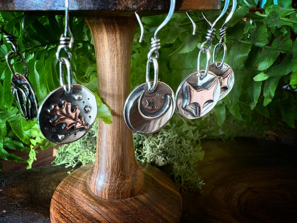 Size: Disk approximately 17mm made from sterling silver, with hand made sterling silver circular Bo-Peep ear wires.