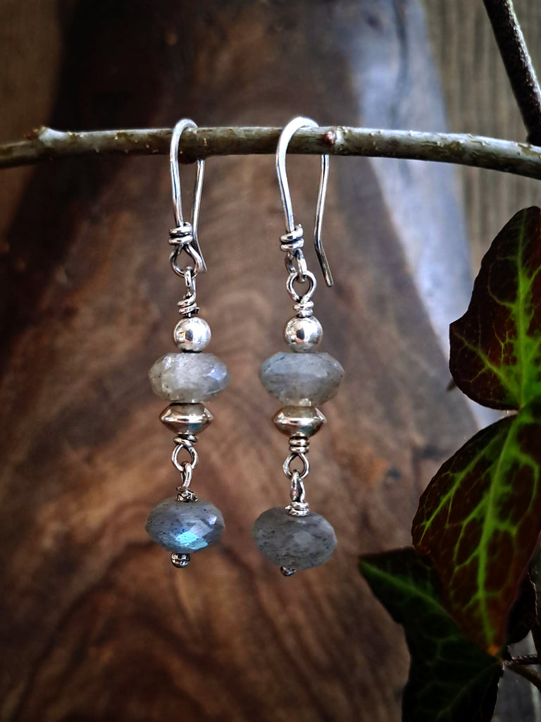 No. 9 - Labradorite rondelles with silver beads - approx. 4.5cm from top of ear wire.